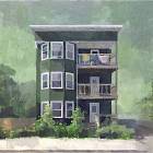 John Bonner states: “I’m an artist who paints what I see around me”. His work documents the familiar environments that we live in or pass through routinely but never stop to look at. Harried workers thoughtlessly float through cityscapes with a palpable ennui, buildings echo emptiness during rain storms. Who are these people, where are they going? Bonner makes the viewer slow down and reflect on beauty of ordinary moments.