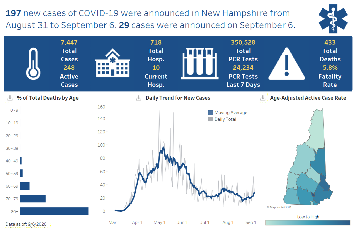 ย New Hampshire 2019 Novel Coronavirus (COVID-19) Summary Report (data updated November 20,ย 2020, 9:00 AM)