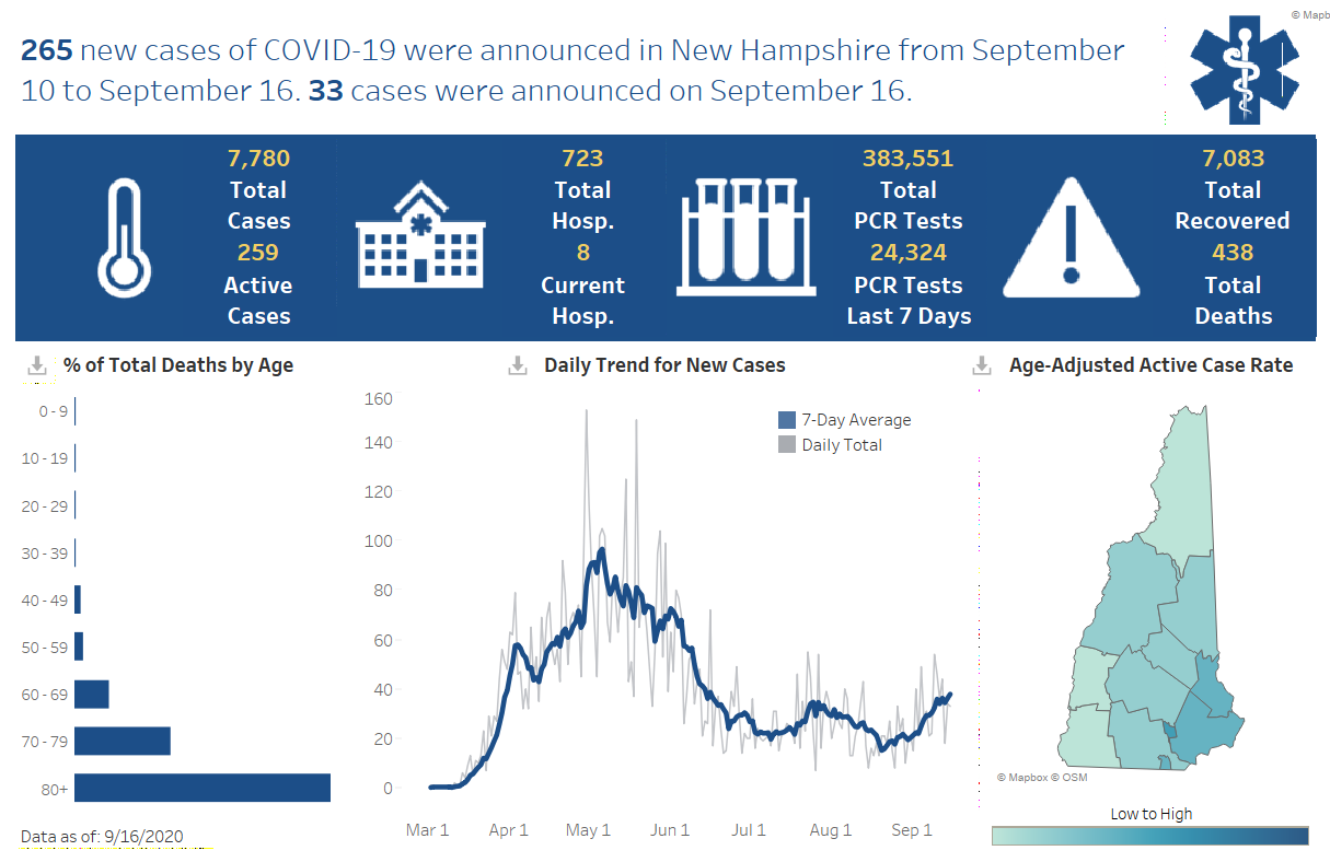 ย New Hampshire 2019 Novel Coronavirus (COVID-19) Summary Report (data updated November 24, 2020, 9 a.m.)
