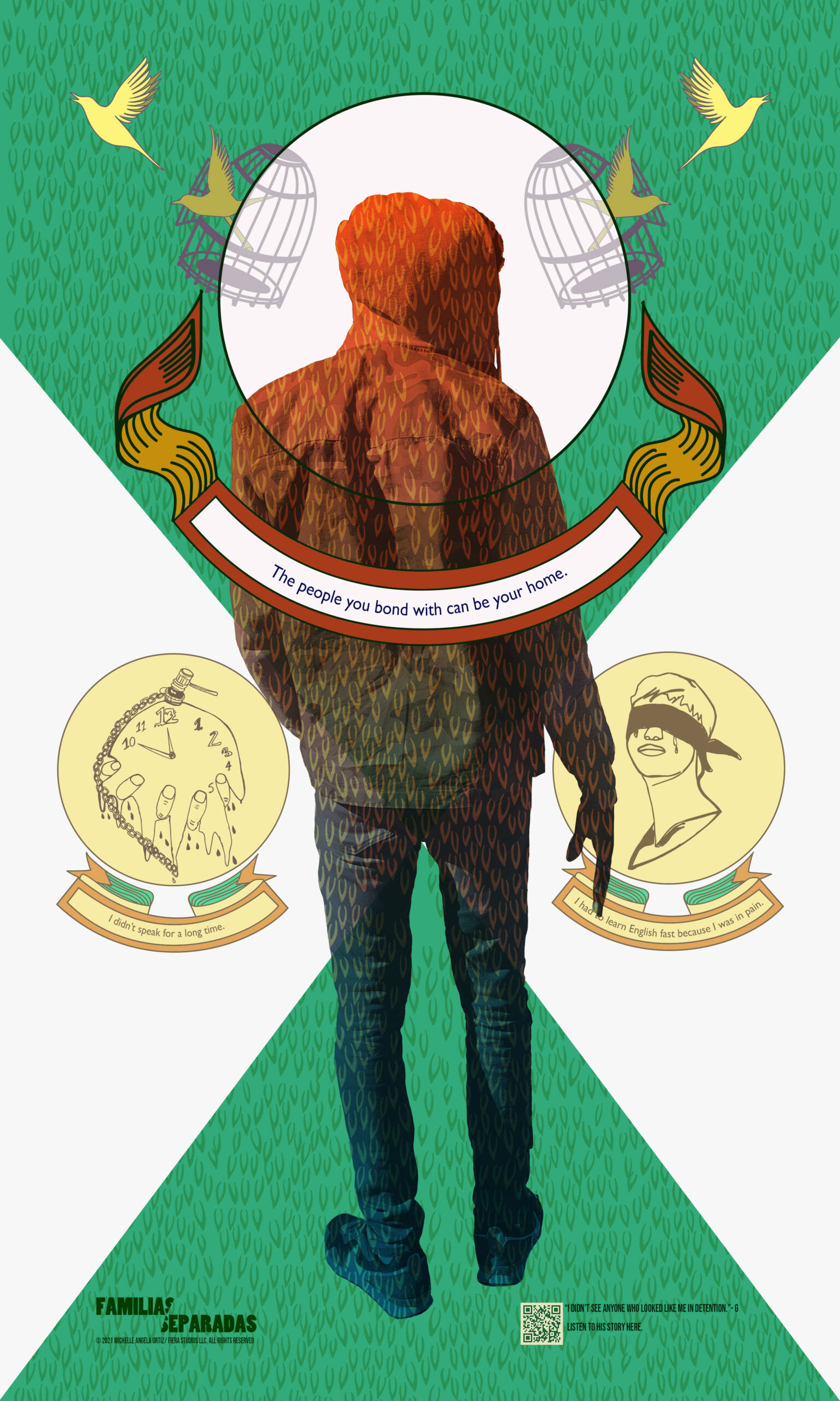 G – G is an African immigrant who was detained at the border between Mexico and the United States. He describes his journey, not knowing where he was or how to communicate. He speaks to the challenges of learning Spanish and English and the bonds forged in spite of language barriers. More on G’s story here.