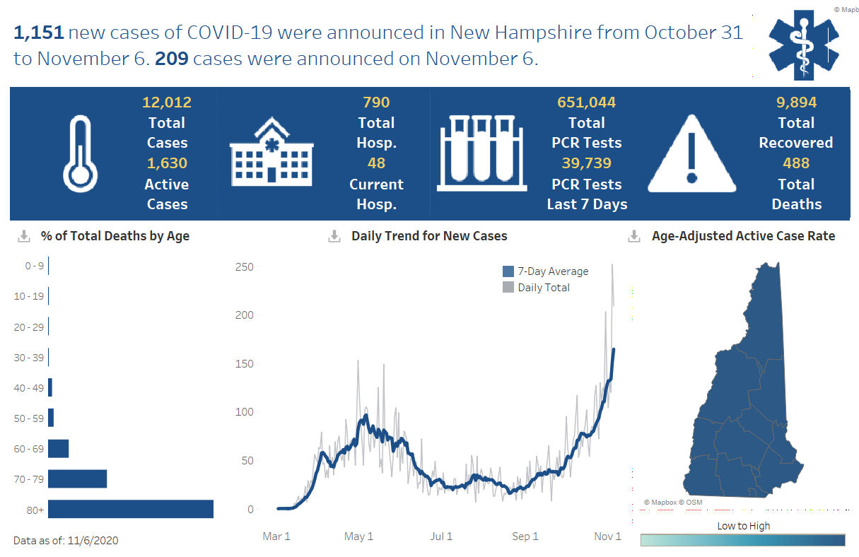 ย New Hampshire 2019 Novel Coronavirus (COVID-19) Summary Report (data updated November 7, 2020, 9 a.m.)