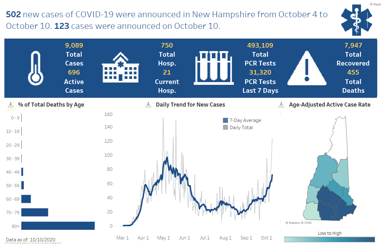 New Hampshire 2019 Novel Coronavirus (COVID-19) Summary Report (data updated October 10, 2020, 9 a.m.)