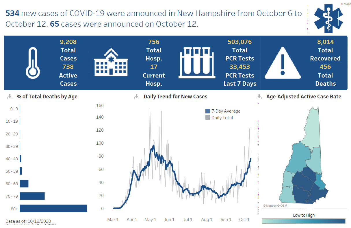 ย New Hampshire 2019 Novel Coronavirus (COVID-19) Summary Report (data updated October 12, 2020, 9 a.m.)