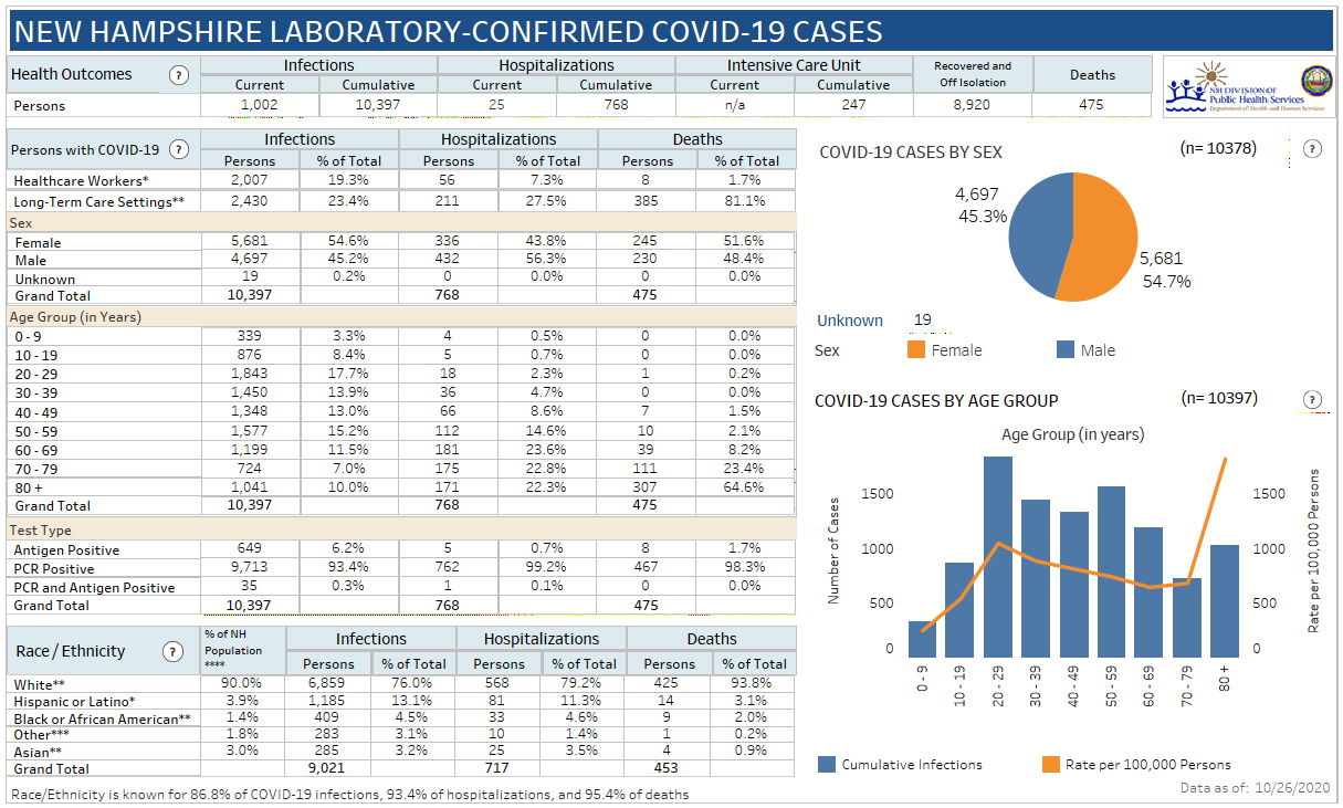 The most up-to-date laboratory testing data, positivity rates and vaccination data are available on the COVID-19 dashboards at https://www.covid19.nh.gov/dashboard/overview.