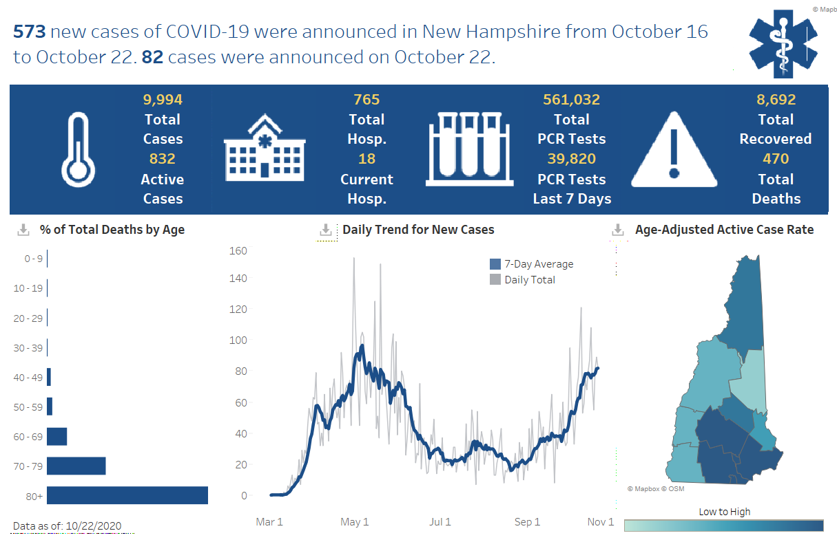 New Hampshire 2019 Novel Coronavirus (COVID-19) Summary Report (data updated October 22, 2020, 9 a.m.)
