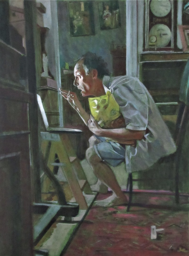 “To have other individuals believe in what I am creating helps reinforce my conviction that I am on the right path,” says Clive. His award-winning paintings are a series of self-portraits brimming with honesty, candor, and a sense of humor. ”I believe my work should be honest, compassionate, and vulnerable with a bit of dry humor,” he adds.