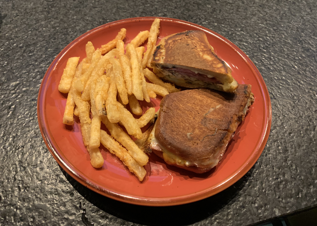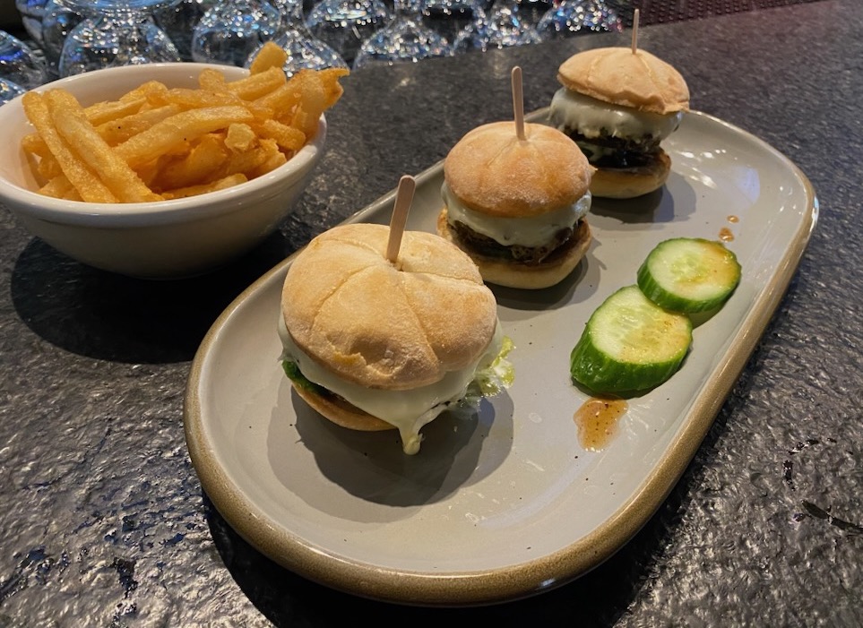 For our main orders, my wife chose the Aloo Tiki Sliders, while I chose the Cubano, having been a fan of cuban sandwiches since first discovering them at the Granite Street Bar and Grill around 30 years ago. The Aloo Tiki Sliders are described: “Spicy Mashed Potatoes & Peas, Cheese, Cilantro Chutney, Tamarind Chutney, Cucumbers, Pico de Gallo (Vegetarian Option).” They were unquestionably delicious, perhaps the single most flavorful food item we had that day. Contents between the buns just a bit on the soft side. The Cubano was as you might expect: “Slow Roasted Pork, Grilled Ham, Swiss Cheese, House Mustard, House Pickles.” Very good.