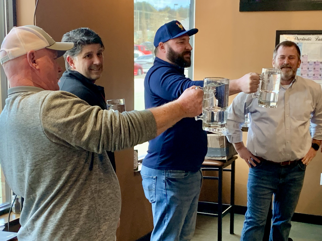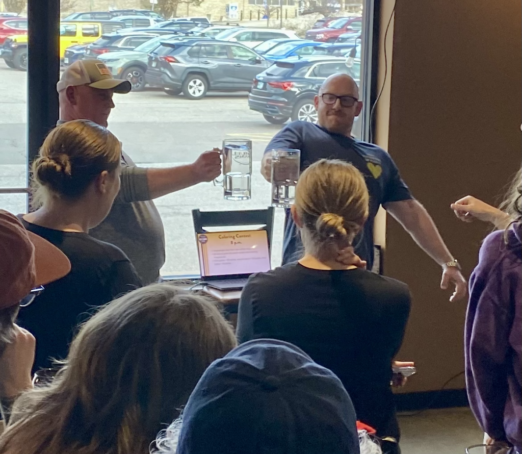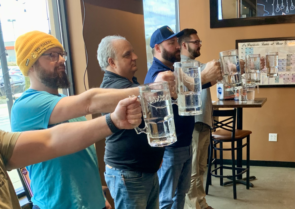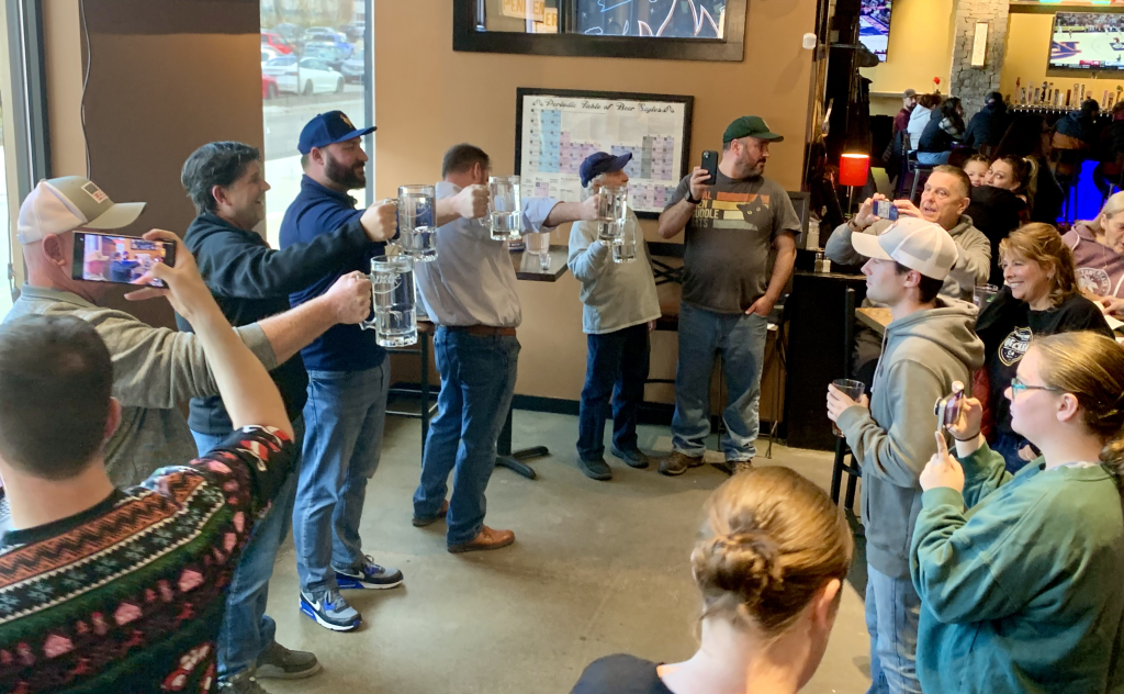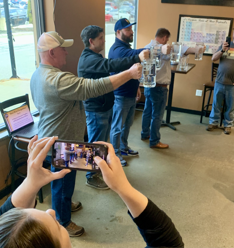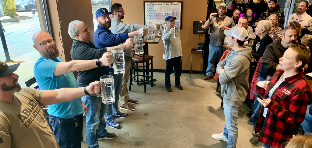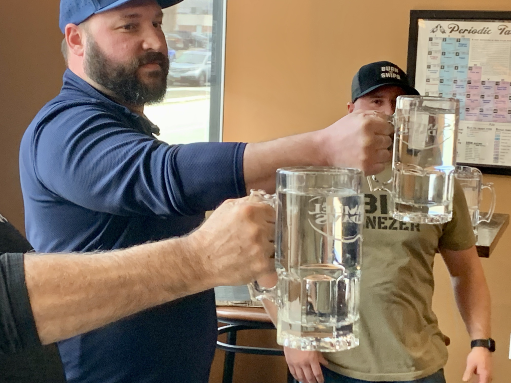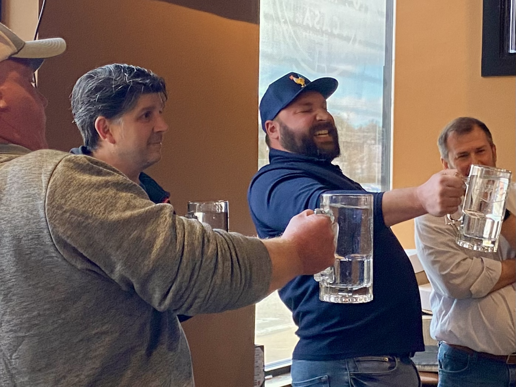 Steins are hoisted as round one is about to get started.