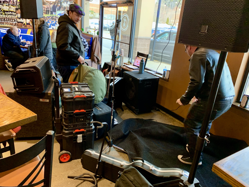 After the stein hoisting competition, local band Rebel Collective sets up to entertain the crowd.