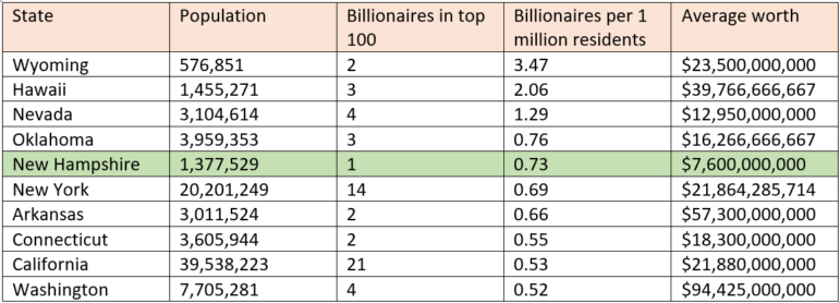 It may surprise you to learn that New Hampshire has the fifth-highest number of billionaires per million people in the U.S.