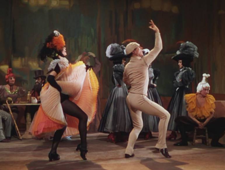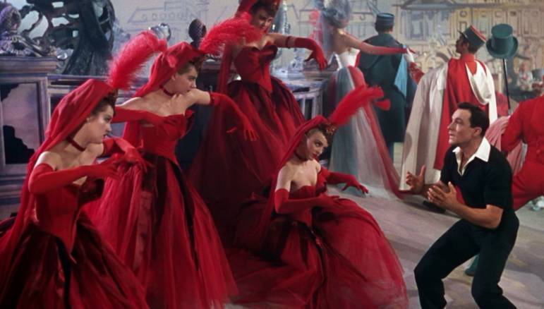 When the character of Lise is introduced at the beginning of the film, as well as the “I’ll Build a Stairway to Paradise” number, Minnelli calls on his theatrical credentials. In presenting Lise, Minnelli uses color blocking similar to his 1953 film, “The Band Wagon” (another big-screen worthy musical). Notice the set reflecting Minnelli’s theatrical flair. There are no walls yet space is chicly defined. During the “I’ll Build a Stairway to Paradise” performance, Minnelli utilizes what seems to be an infinite Folies Begere-esque lit stairway, with glamorous long-legged, headdress-balancing showgirls as ornamentation.