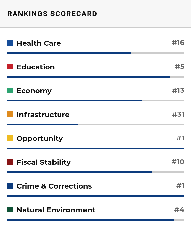 The poll looked at eight categories and ranked each state, then did the math, which is how we landed at No. 2 overall. You can read more about the methodology of the ranking system here.