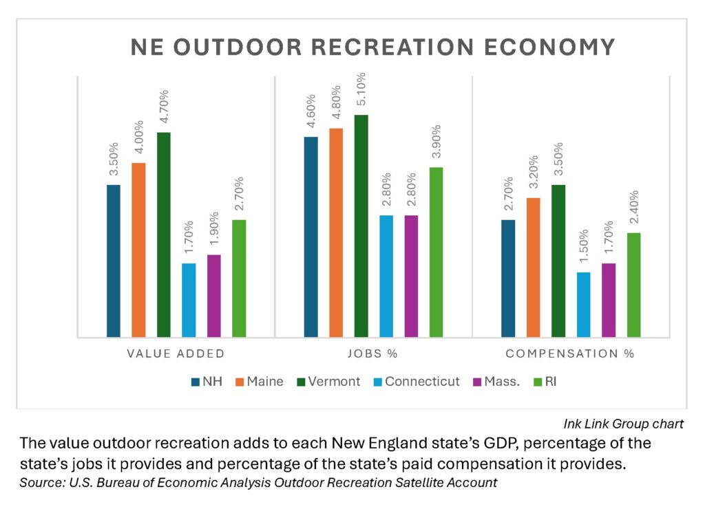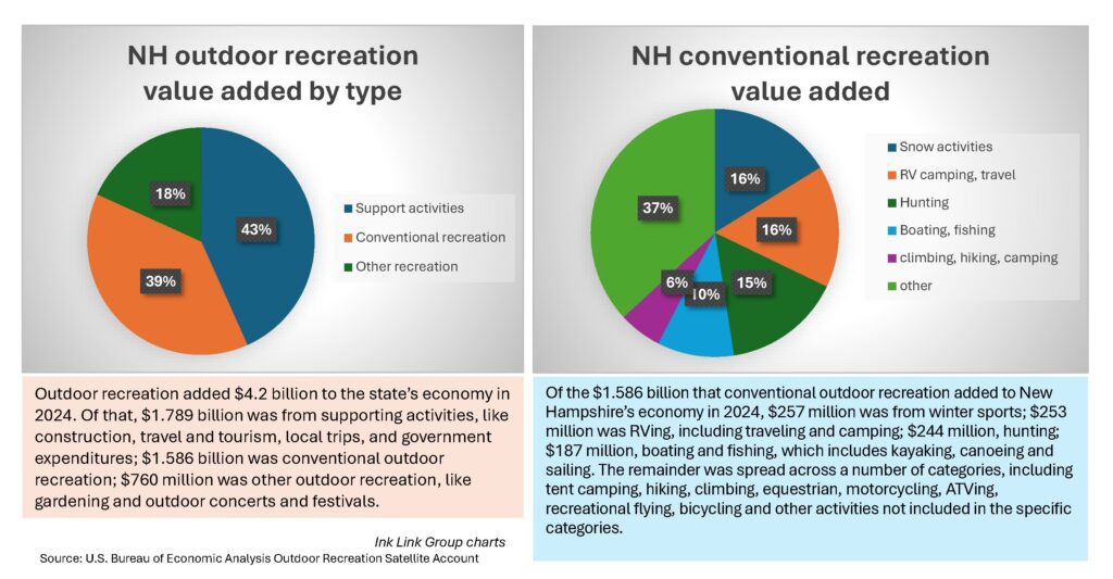 Outdoor recreation contributed $4.2 billion, value-added, to the New Hampshire economy, accounting for 3.5% of New Hampshire GDP in 2024, according to the report, released Thursday. Value-added is the value of the goods and services produced, less the value of the goods and services used up in production.