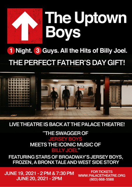 Individual tickets ($39-49) are on sale now through The Palace Theatre for performances on June 19, 2021, @2 p.m. and 7:30 p.m. and on June 20, 2021, @ 2 p.m.. Call (603) 668-5588 or visit www.palacetheatre.org or www.uptownboyslive.com for ticket information and to learn more.