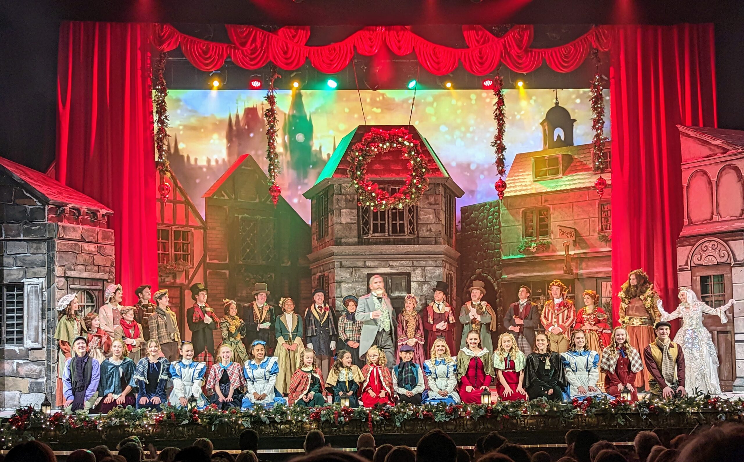 Between the storylines, delivered artfully by Tim Lawrence as narrator โ whose true character reveal in the closing scene of the play evoked gasps from the audience โ are nearly a dozen lively musical numbers that serve up every morsel of holiday merriment the audience comes craving, thanks to the collaborative efforts of music director John Tegowski, and artistic director and choreographer Carl Rajotte, who developed this signature version of “A Christmas Carol” exclusively for Palace Theatre audiences.