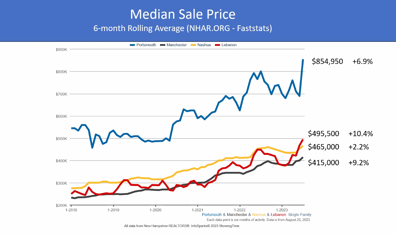 the median sales price in July was $480,000, according to NHAR, and $440,000 according to NH Housing, which filters out some property types.
