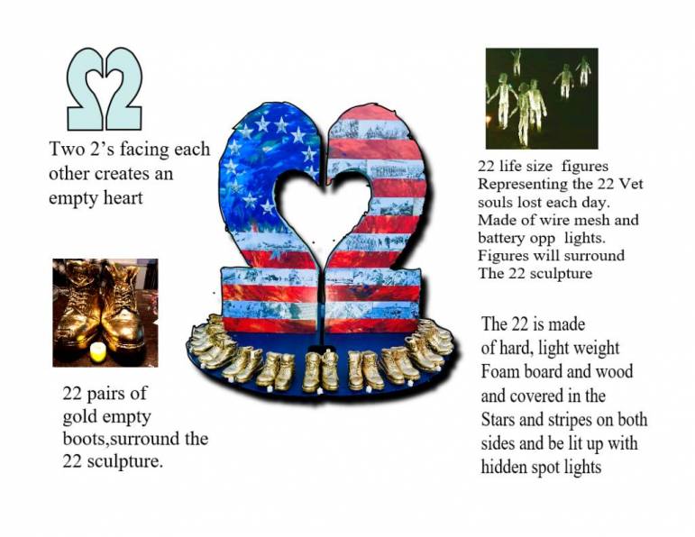 His most recent traveling art tour is called simply, “22-13,” the 22 stands for a statistic that we know all too well; it represents the average number of veterans who take their own lives each day by suicide. The 13 is for the original 13 U.S. colonies, of which New Hampshire is one, which is why Lobaido’s exhibition is heading to Laconia April 22 and 13 where 22-13 will be installed at the American Legion Post 1, ย 849 N Main St., Laconia.
