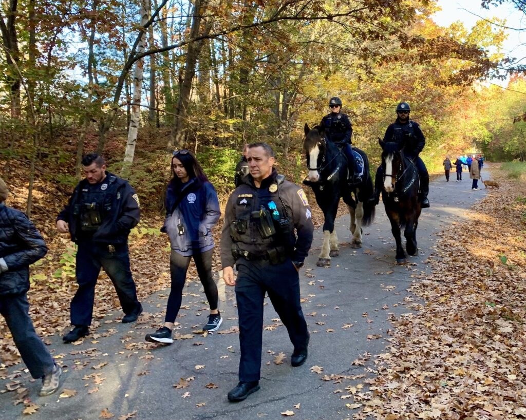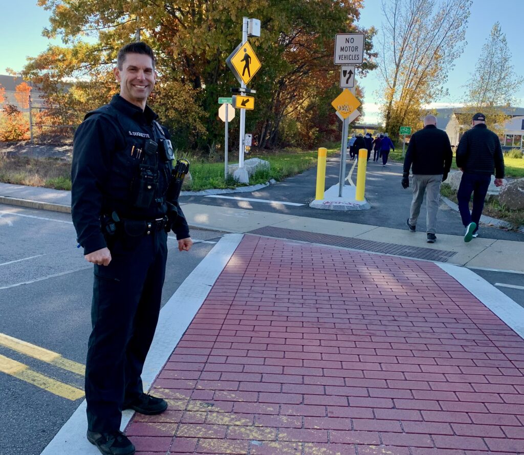This was a gorgeous stretch of trail, with only one road crossing from our starting point. Officer Duquette stood by as crossing guard to stop traffic and ensure everyone made it across safely.