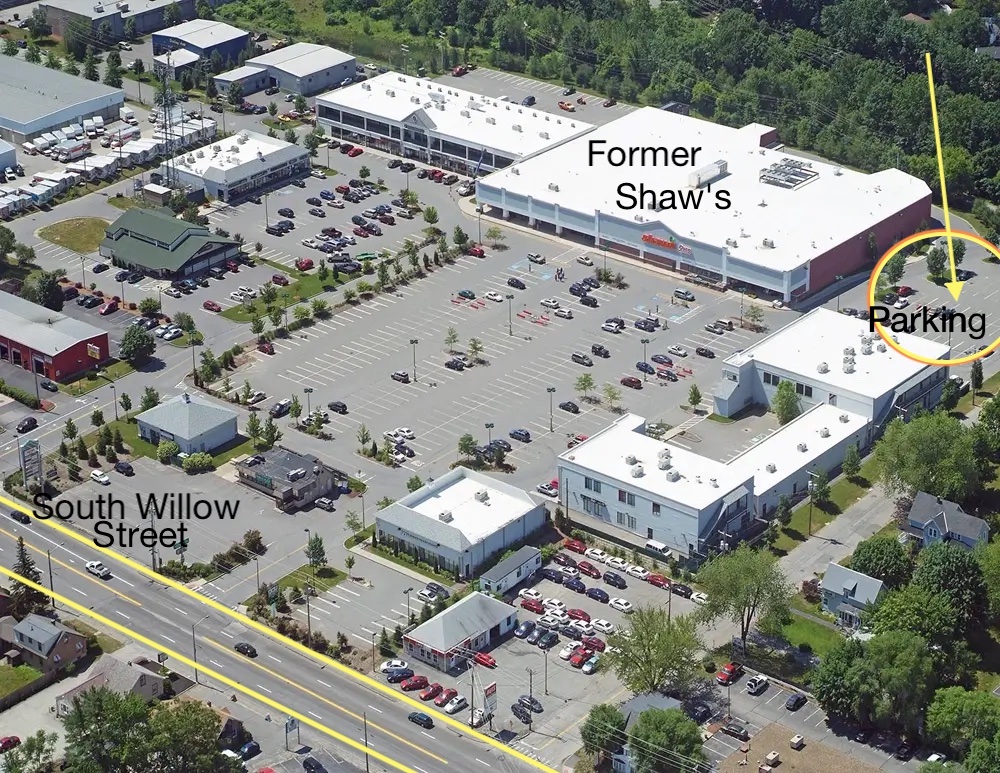 We started in a large parking lot, which is usually almost empty. Today, it was nearly full. This lot is part of Brady Sullivan’s Manchester Commons, and lies east of South Beech St., south-west of The UPS Store, and north-west of a large empty commercial space that used to be a Shaw’s supermarket. It is west of South Willow Street.