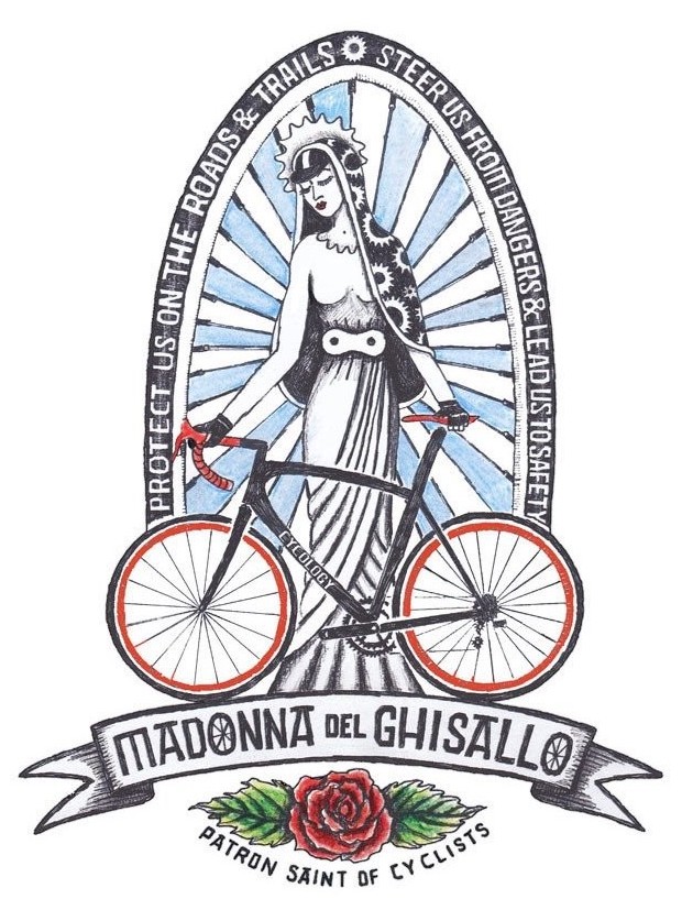 Today a chapel on the hill contains a cycling museum with many artifacts. Perhaps most notable, the mangled bicycle ridden by local native Fabio Casartelli when he died in a crash in the 1995 Tour de France. Cycling can be risky! We need all the saints we can get!