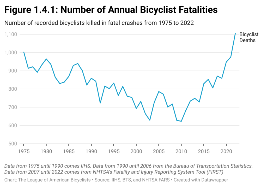 A report from the League of American Bicyclists notes that the above data show that 2022 was the deadliest year for cyclists EVER.