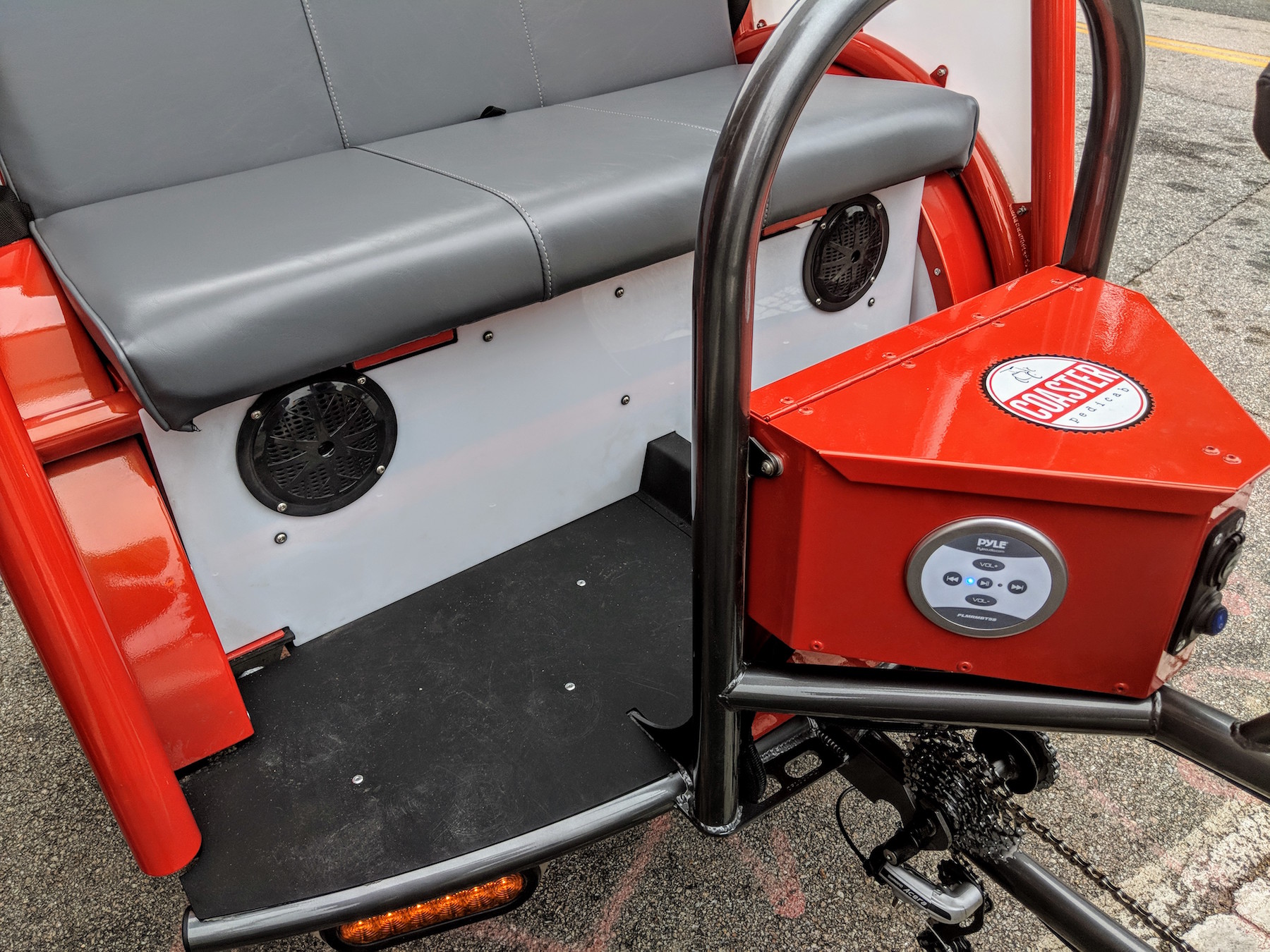 “I just love cycling. In fact, I 100-percent hate having a car,” says Cashion, who is a dedicated bicycle commuter. He’s determined to grow his business beyond his solo pedicab โ which, for the record, is pretty tricked-out. It includes bench seat storage, directional signals, old-school bike bell, hydraulic brakes and a sweet sound system that allows passengers to select their favorite playlist or genre for the journey.