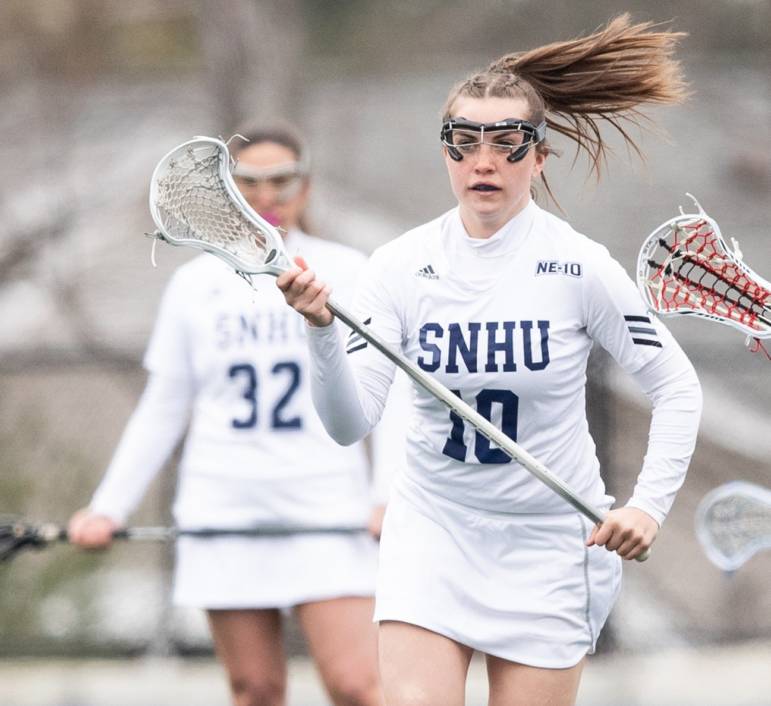 Southern New Hampshire held a 6-3 lead with just over 13 minutes remaining in the opening half when it scored eight of the next nine goals to push the game into running clock with a 14-4 lead in the final minute of the stanza. Harrington led the way with three goals and an assist during the stretch.