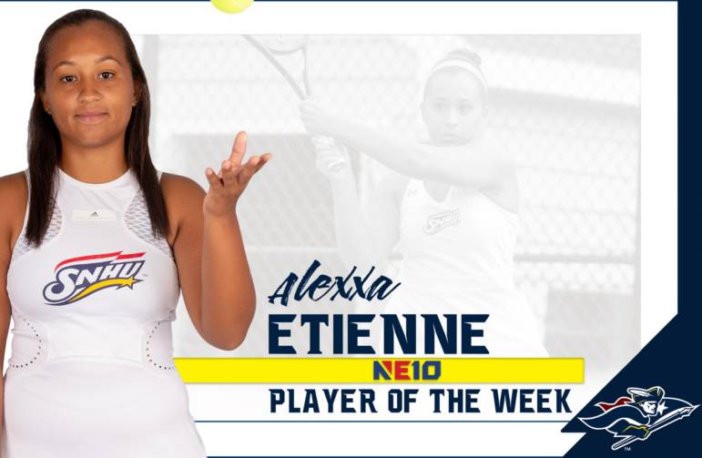This marks the fourth week in a row an SNHU player has won the award, with freshman and Etienneโs doubles teammate Magdalena Hubickova (Prague, Czech Republic) winning the award over the last few weeks.