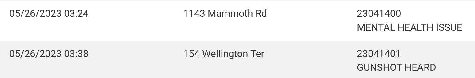 At approximately 3:25 a.m. on Friday, May 26, 2023, Manchester police officers responded to a 911 call for a report of a person who was armed with a firearm at 1143 Mammoth Road in Manchester. The Manchester police activity log reflects a call for a “mental health issue” at approximately that same time.