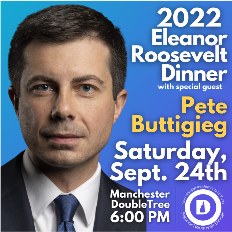 CONCORD, N.H. – U.S. Secretary of Transportation Pete Buttigieg will headline the New Hampshire Democratic Party Eleanor Roosevelt Dinner on Saturday night at the Manchester Hilton Doubletree Hotel.