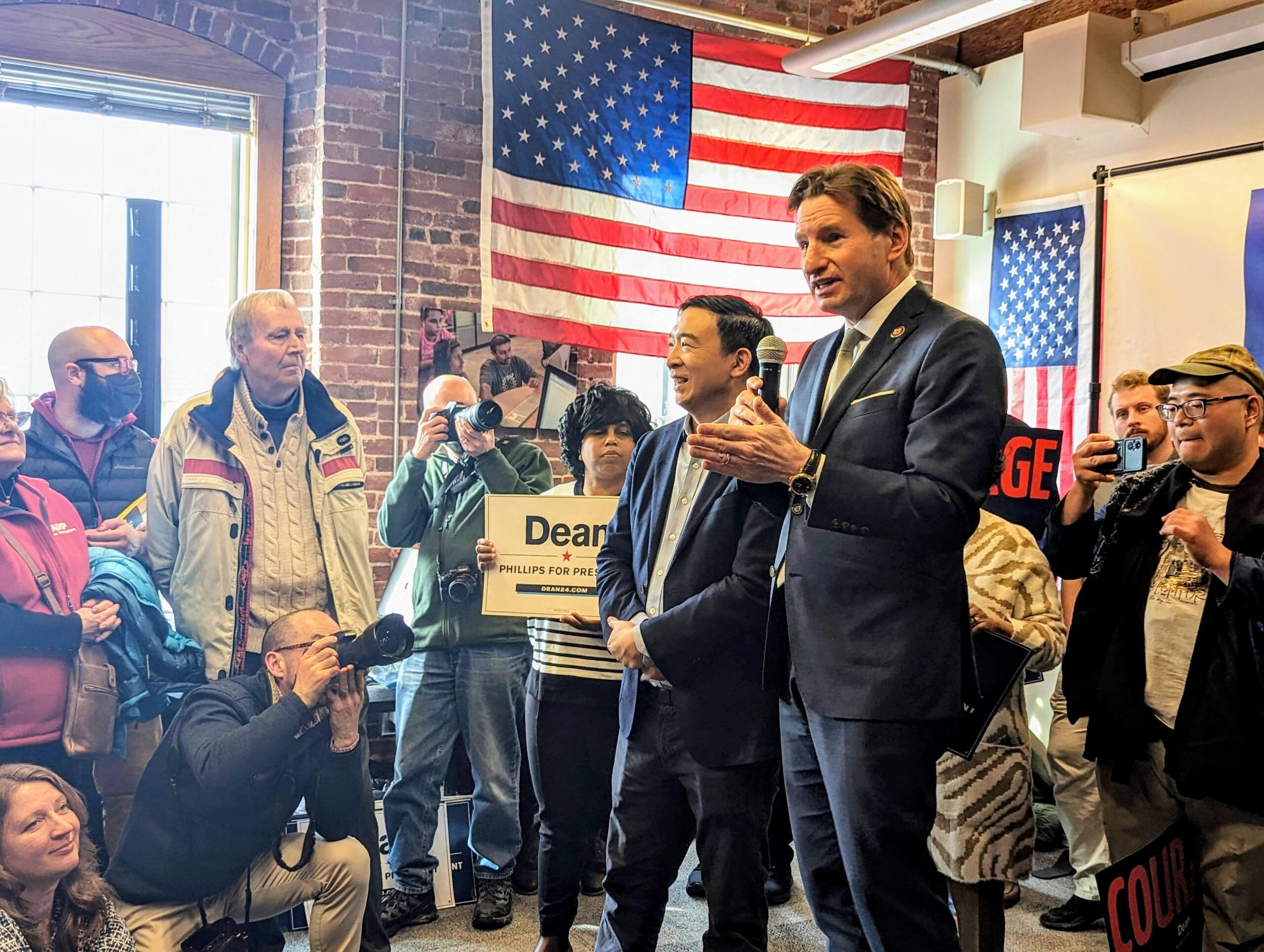 Andrew Yang, founder of the Forward Party, endorses Dean Phillips for President. Photo/Carol Robidoux