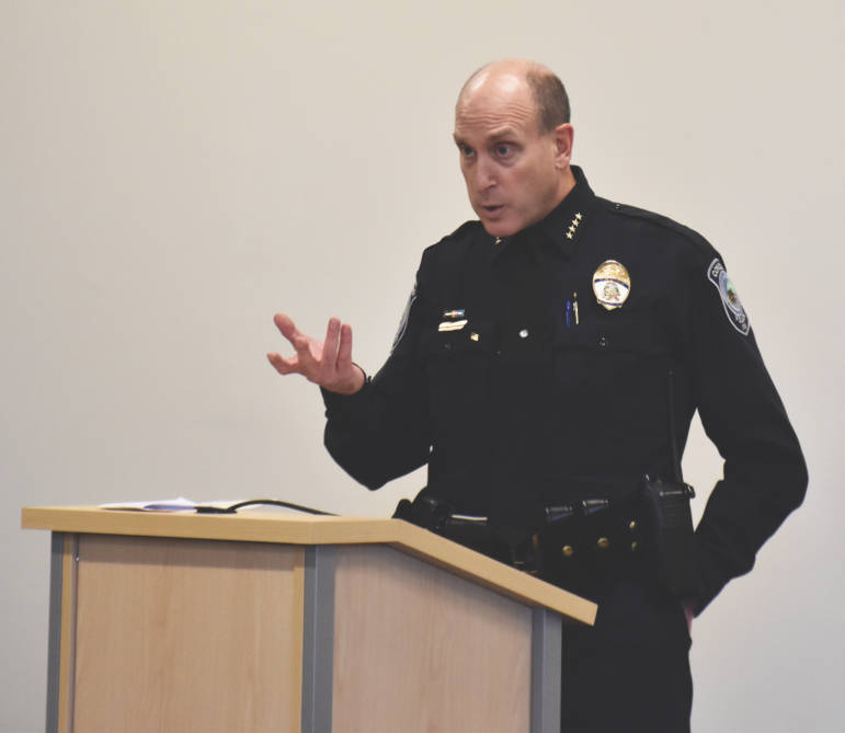 Concord Police Chief Bradley Osgood speaks at Christopher Rugglesโ€™ graduation in Concord. (Photo: Anna Berry)