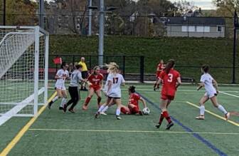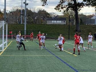 The struggle to put the ball in the back of the net almost jumped up to bite the 2nd-seeded Pioneers on Sunday, in their Division III State Quarterfinal against 10th-seeded Belmont at Derryfield Park. In the end, they needed an exceptional effort from their defense and a goal in the 50th minute from captain Lexi Spradling to escape with a 1-0 win.