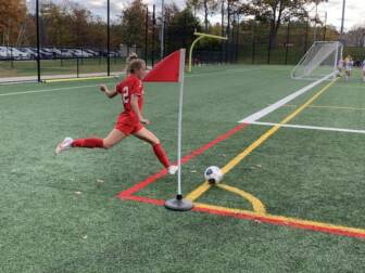 Nearly 10 minutes into the half, a corner by De Petrillo led to the game’s only goal. The left-footed De Petrillo curled the ball from the right corner to about five yards in front of the Belmont net. The ball bounced once and Spradling, who came charging in, deflected it with her body and past Matthews for the score.