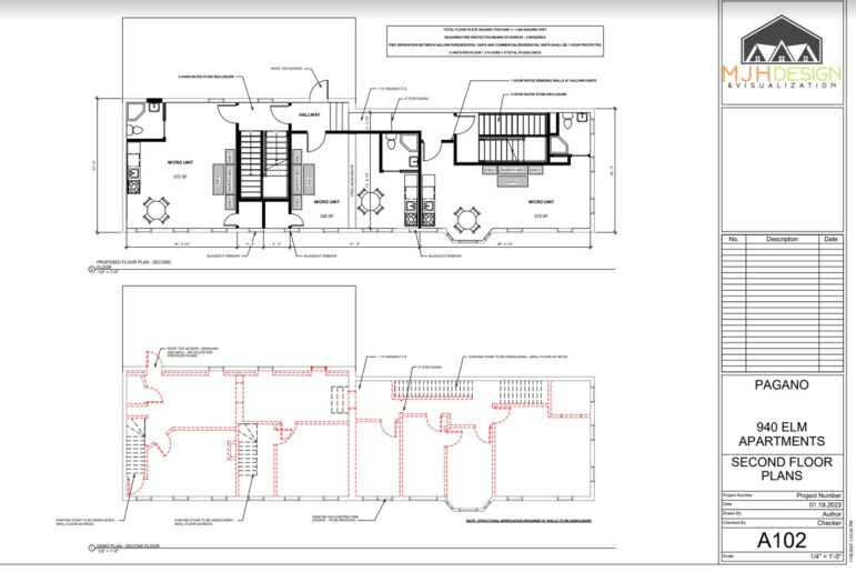 Rent prices were not mentioned during the hearing, but the units would range in size from 326 sq. ft to 372 sq. ft., with three units on each floor. The proposal included reconfiguring three current staircases into two, and asbestos and lead abatement. A mansard or gambrel-style roof will also be constructed on 9 Stark St. to allow more room for the fourth-floor apartments there.