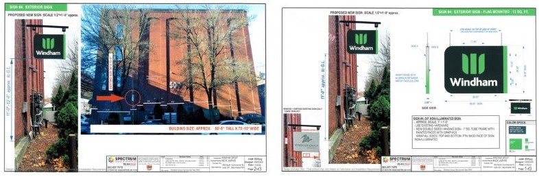 Applicant proposes to maintain a 12 SF projecting sign on the front of the building for an upper-floor tenant and seeks a variance from section 9.09(A)3 Signs.