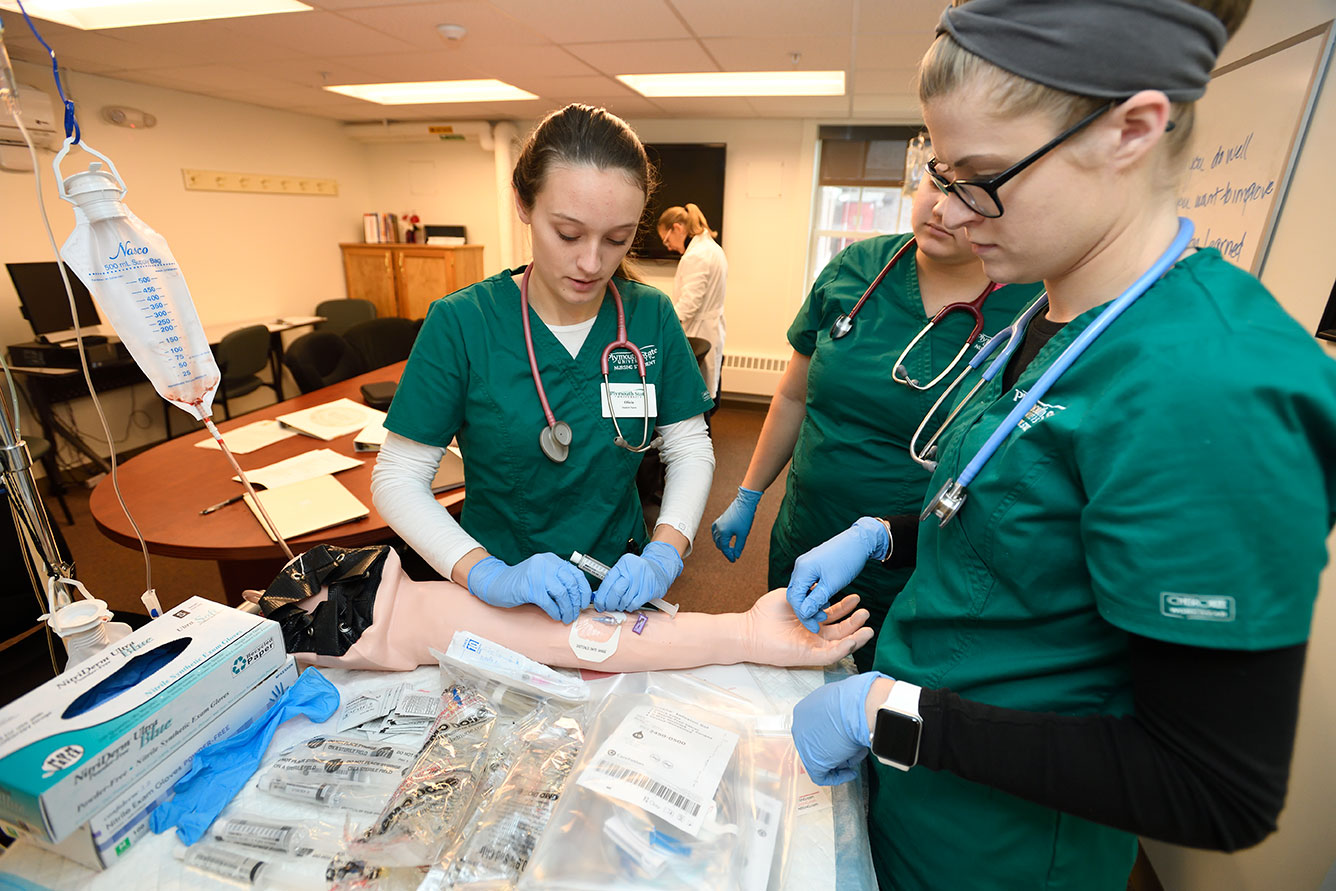 PSU’s nursing program is a four-year degree program in which students may graduate with a Bachelor’s Degree in Nursing (BSN). The program, which graduated its first nursing class in 2013, was originally accredited by the Commission on Collegiate Nursing Education (CCNE) as a new collegiate program, but earned full accreditation in 2018. Many PSU graduates begin their nursing careers at hospitals and other clinical sites in New Hampshire