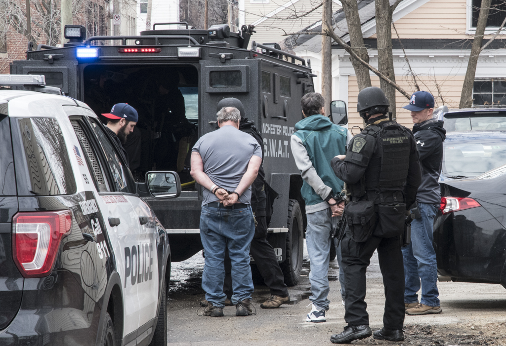 MANCHESTER, NH โ The Manchester Police Department Special Enforcement Division, in conjunction with New Hampshire State Police, United States Drug Enforcement Administration, Hillsborough County Sheriffโs Office and Rockingham County Sherriffโs Office spearheaded a drug sweep as part of Operation Granite Shield. The operation commenced early this morning and concluded at 9 p.m. on Feb. 15. The Manchester Police SWAT team also participated in a series of arrests for wanted individuals throughout the day.