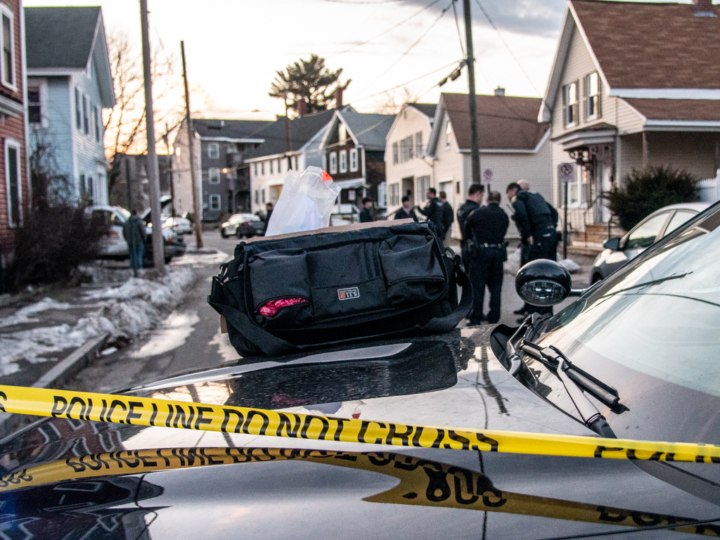 Several police officers blocked off parts of Granite Street near West Street. Crime scene tape closed off the area and detectives worked placing evidence markers, and taking photographs. At one point detectives appeared to be gathering evidence from under the hood of a pickup truck that was parked in a driveway.