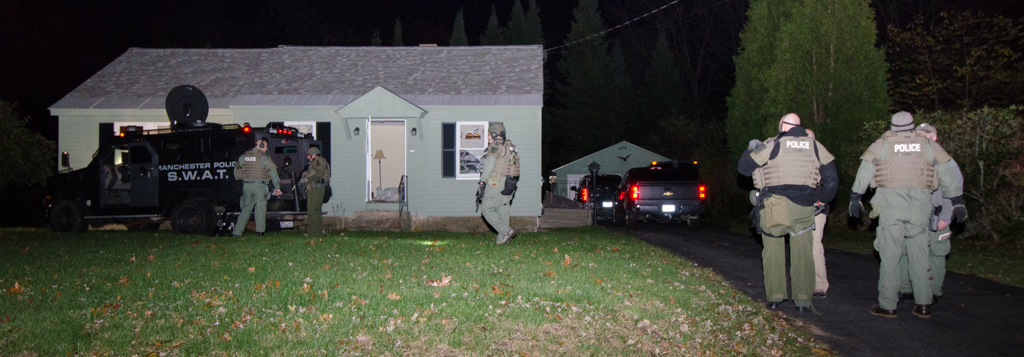 Due to the circumstances and “violent nature” of the Pine Street shooting, Manchester Police utilized the SWAT team to locate Murray at his Hooksett home.