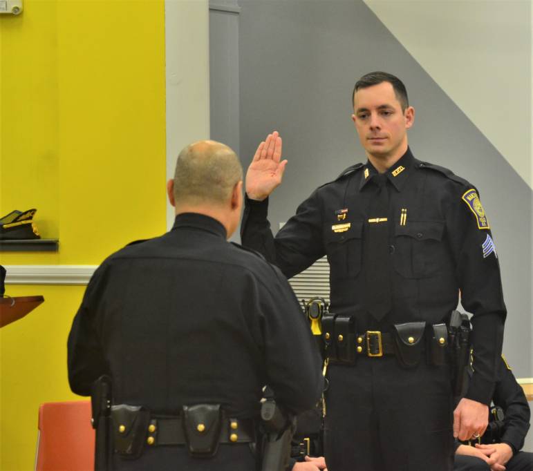 Newly minted Sergeant Nicholas Georgoulis will now be a shift supervisor, following roles within the department with the SWAT Team, investigating child abuse and sexual exploitation cases, serving as a school resource officer and patrolling the city during the midnight shift.