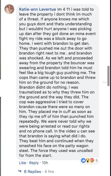There are more than 200 comments on the Facebook thread pertaining to the arrest, including comments from a Katie-Ann Lavertue, identified in the police report as one of the four people arrested.