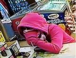 She is described as a a white female,ย approximately 5-foot-2 to 5-foot 3 inches tall with blonde hair and pale skin. She was last seen wearing a red hooded sweatshirt, gray pants, dark sunglasses and black sneakers. There was no weapon displayed during the robbery.