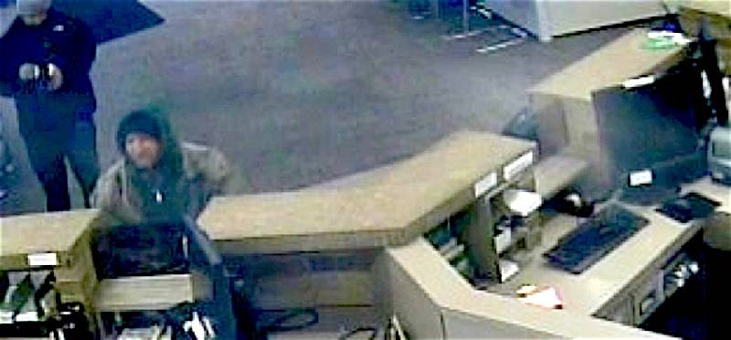 The robber fled the bank with an undetermined amount of money. He is described as an older white male wearing a tan jacket over a green hooded sweatshirt and black knit hat.