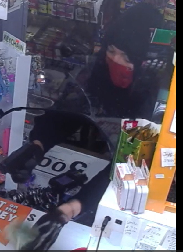 Police learned that a suspect walked into the store, pointed a pistol at the clerk, and took cash andย cigarettes before leaving the store. The suspect is last seen traveling southbound on the east side portionย of the side walk.ย