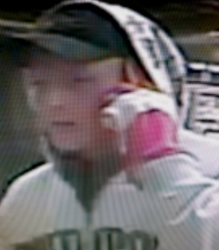 The robber was described as a white male, aboutย 25-30 years old,ย ย blond hair and a muscular build.ย He was wearing a white โ€œSouth Pole Classicโ€ hooded sweatshirt. The hood was pulled over a black baseball hat and he appeared to be wearing red fingerless gloves [see photo captured from surveillance footage.]