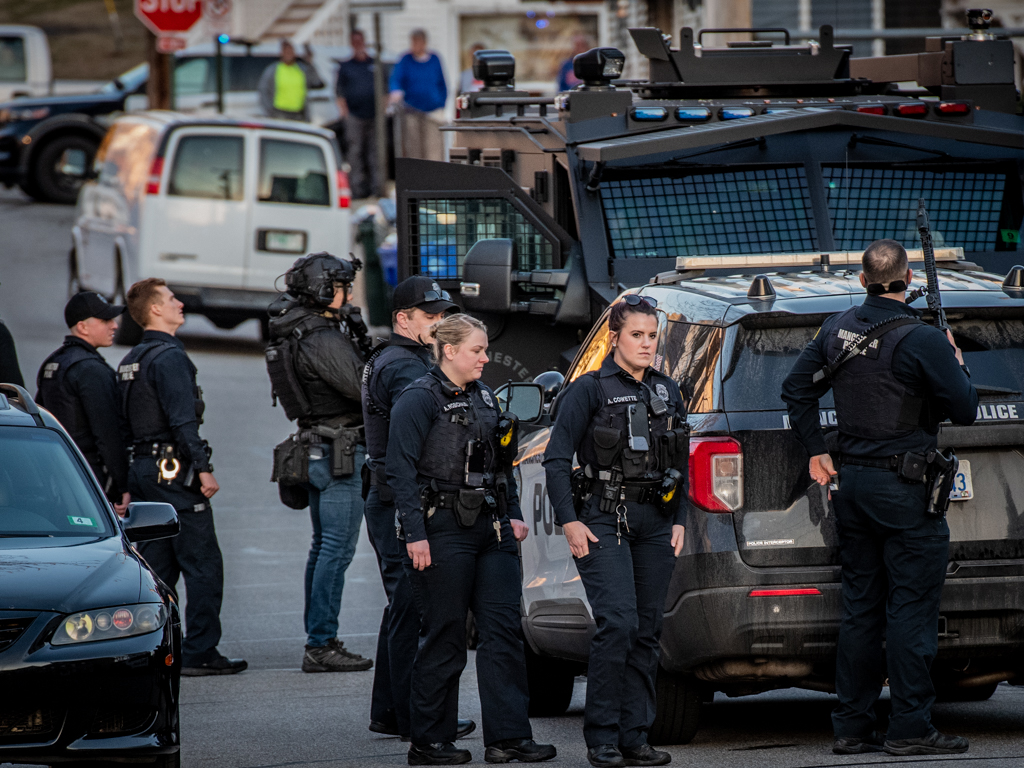 A large police presence was visible on Merrimack Street at about 4 p.m. on Monday. Photo/Jeffrey Hastings