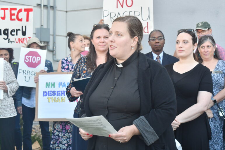Prior to the meeting, opponents of Prager U gathered outside to voice their disapproval for the proposal. These concerns ranged from fears that the companyโs material is not comprehensive enough to meet standards for academic rigor and propagandistic, with New Hampshire Council of Churches Director Reverend Heidi Carrington Heath expressed concern that their content could violate constitutional guidelines.