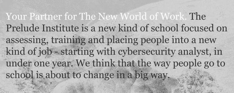 Prelude Institute will take people who either have been left behind in the current job market, or who’ve tried different careers and still haven’t found their groove, and move them from zero to cybersecurity experts in six months. A similar operation has been established in Seattle, and the East Coast/West Coast symbiosis will allow the students to work remotely, one of the many skills required for the job.
