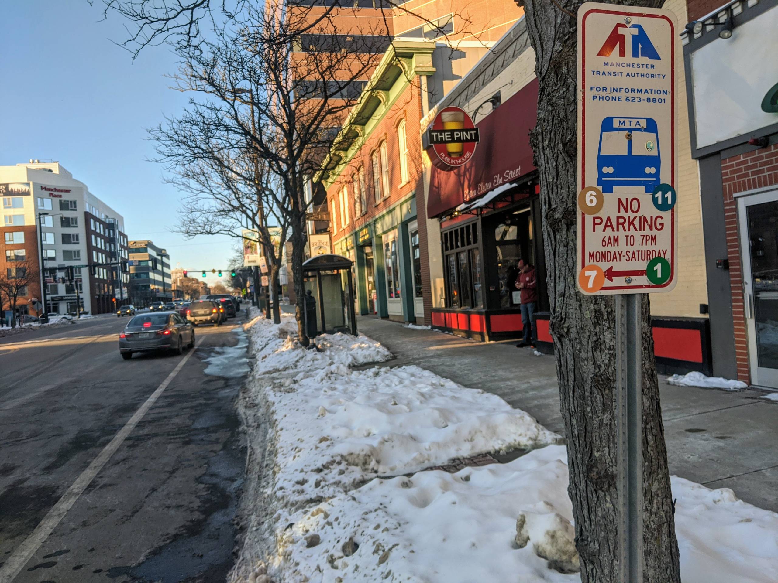 A parking control officer wrote a $50 ticket for a vehicle that was parked in a no-parking zone, oneย reserved for City of Manchester buses on Elm Street.ย